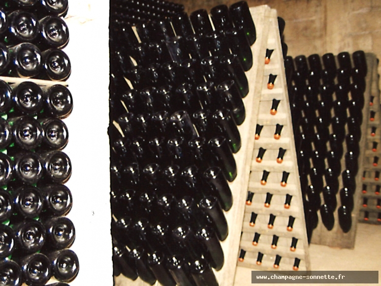 Les bouteilles sont ensuite stockées à plat, dans nos caves, pendant plusieurs années.